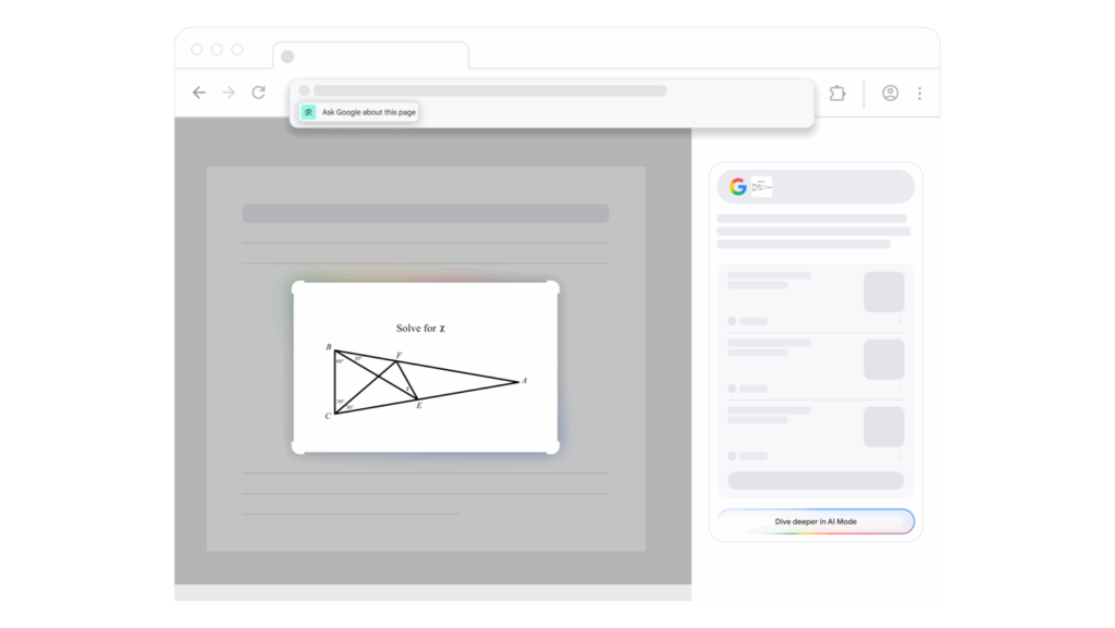 When you’re browsing on Chrome and click in the address bar, you’ll now see a suggestion: “Ask Google about this page.” Click it, select an image, diagram, or text section, and AI Mode will give you an overview right in a side panel. It’s quick, simple, and deeply insightful.